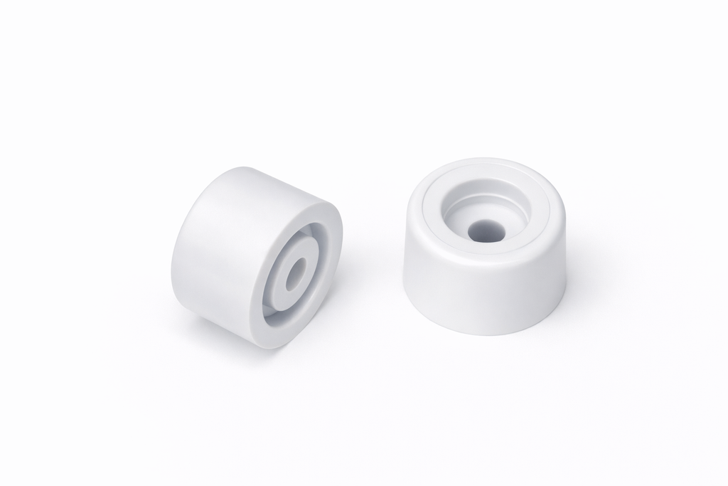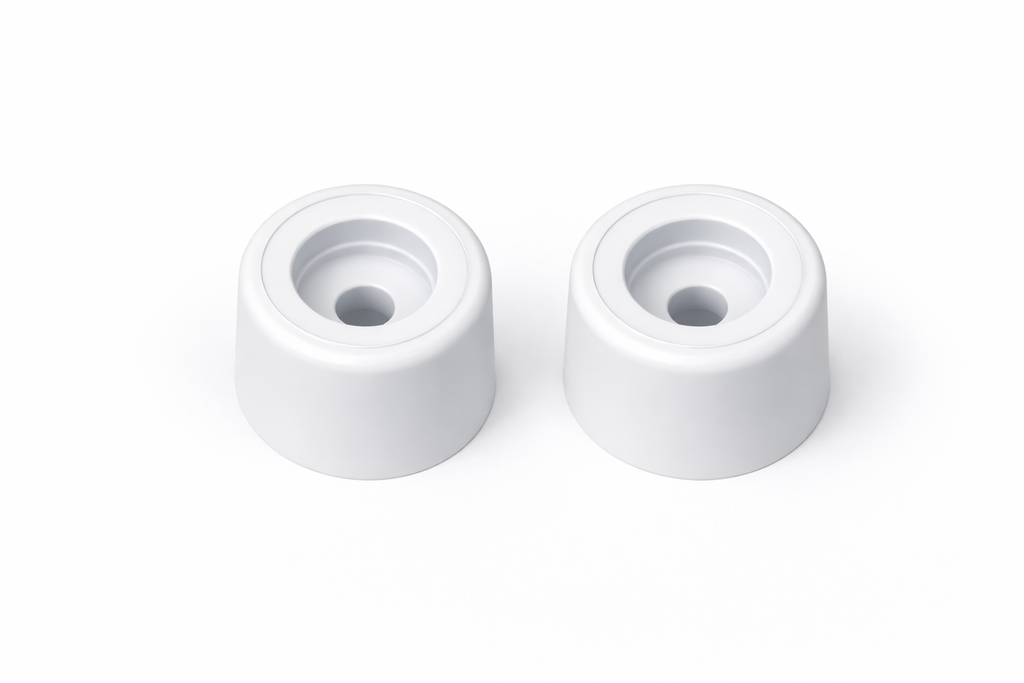 Batedor de porta em PVC branco com fixação por parafuso.